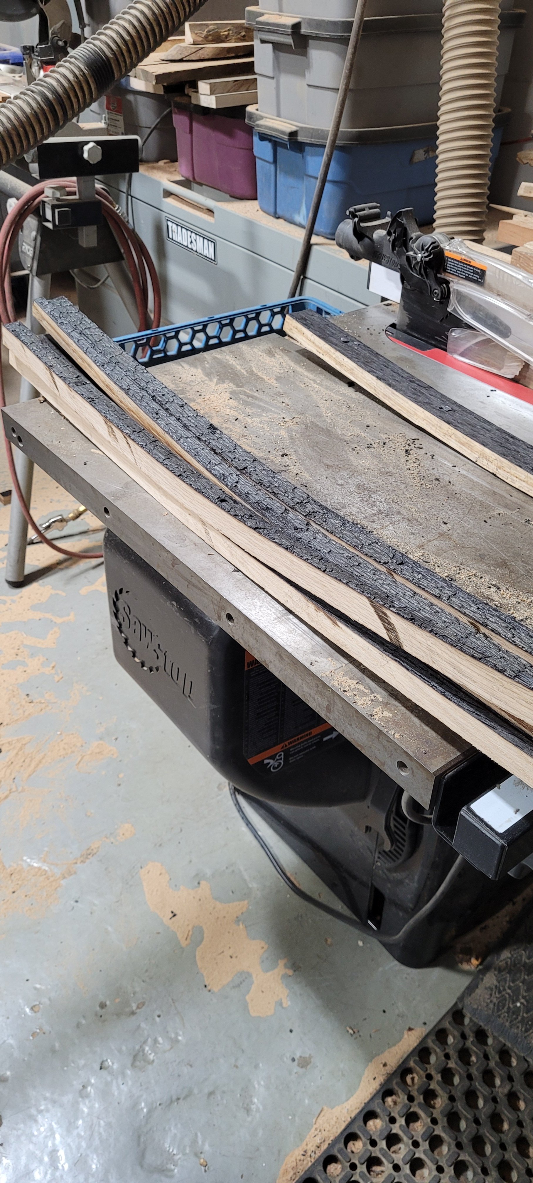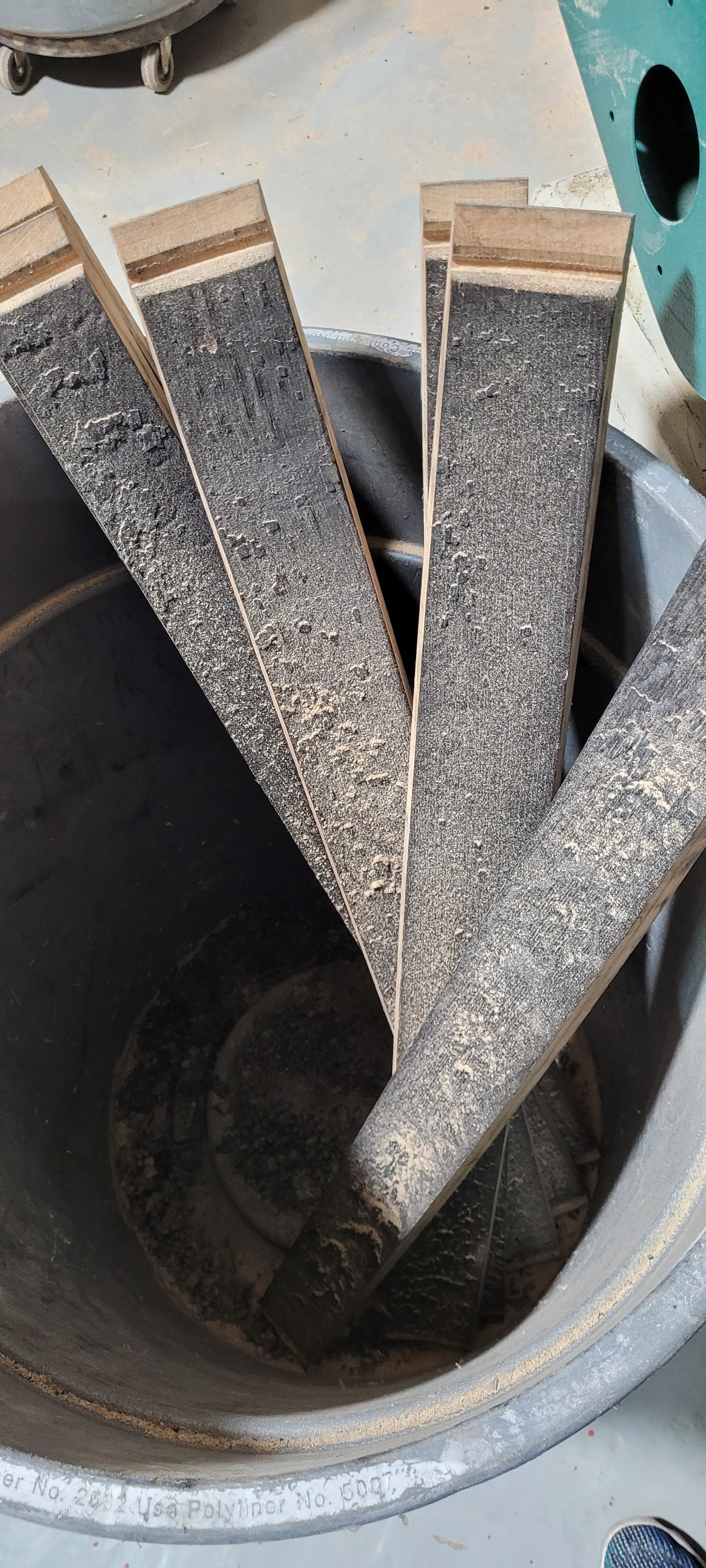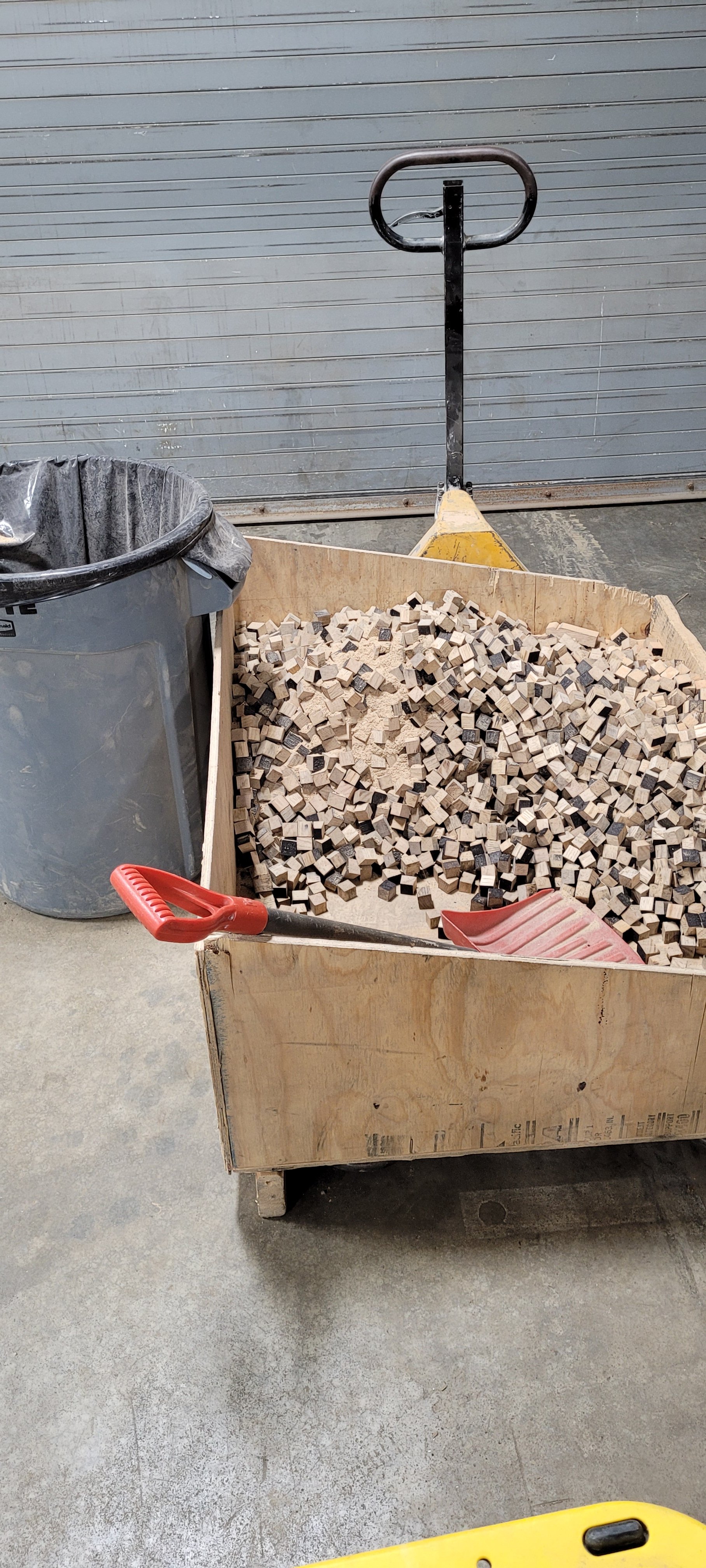 At the Cleveland Whiskey distillery, after the whiskey barrels are emptied they are then taken apart, back down to their staves. The staves are sanded on the outside — the non-charred side. After that they are cut into strips, and then into small cubes. These cubes — or “Bricx” as they are called by Cleveland Whiskey — are then used to flavor more bourbon in a proprietary process. Some Cleveland Whiskey bourbons use other woods besides the barrels’ oak, and those woods are charred by hand at the distillery.