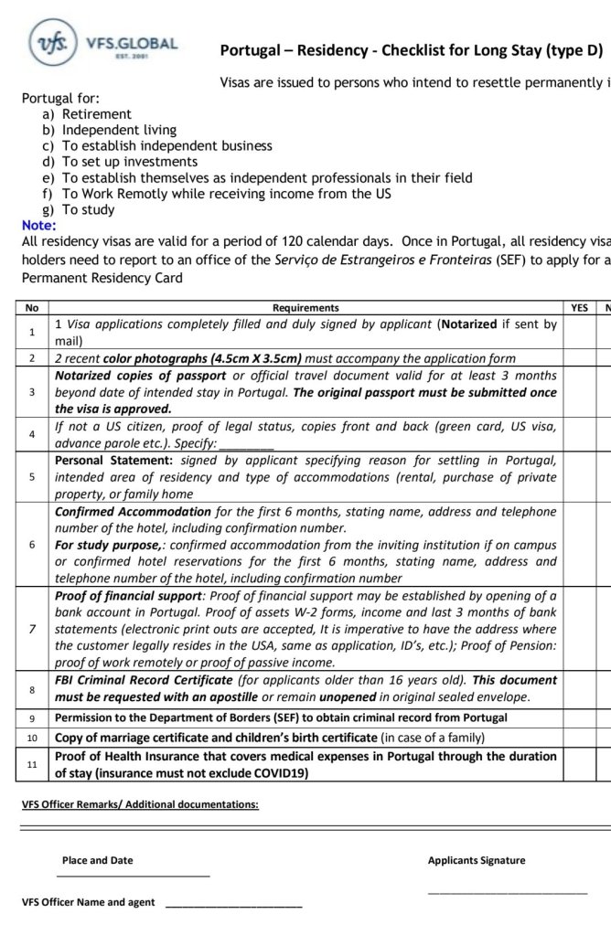I’m applying for D7 Residency, which is a two-part process. I first apply for a Residency Visa here in the US, at the Portuguese consulate that has jurisdiction over my state. That visa is good for 120 days from the date of issuance and allows me to enter Portugal. Once I arrive in Portugal I then must schedule an appointment with Portuguese Immigration (SEF) to apply for my Residency Permit, which is good for two years and renewable up to five years. After five years I can then apply for permanent residency.