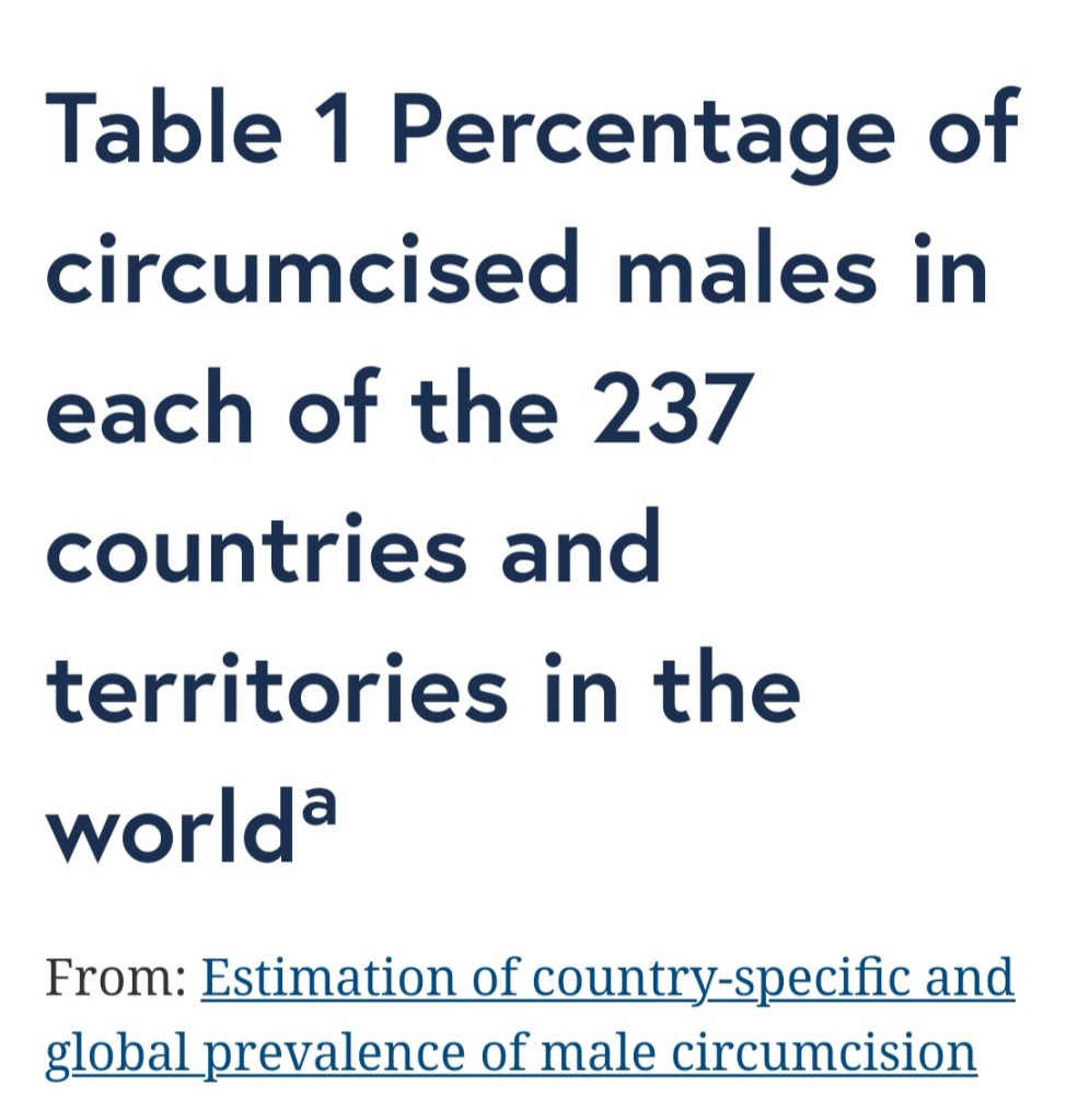 My learning: larger percentage of circumcisions in the US than elsewhere. Who knew? You learn something new everyday! Ha ha. 🤭🤭🤭🤭