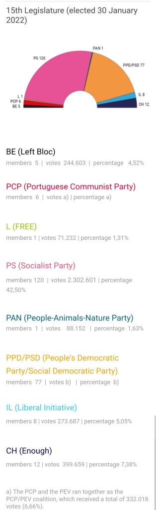 A new government also leaves questions for current and future expats. The center-right, number-two PSD party could come out on top in the March election, but probably without the absolute majority now enjoyed by Costa’s PS party. This may mean a necessary alliance with the far-right Chega party, the distant third-largest force in parliament. The Chega (Enough!) party is ultra-nationalist and anti-immigration (sound familiar?)