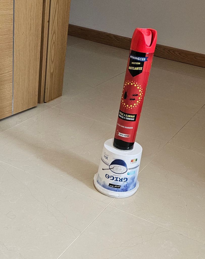 The Portuguese and Brazilian folks I know who live here leave doors and windows open all the time. It is important to get fresh air circulating throughout a home here, year-round, because of interior humidity and potential mold issues. In some households, smoking and stinky fishy fragrant cooking can require open windows/doors. All this openness leads to lots of you-know-what. Bugs, bugs, bugs everywhere in the house. My neighbors and acquaintances swat and spray away. Yikes. I choose my screens as a preventive measure, and use insecticide plug-ins, spray, or a fly swatter for the bugs that sneak inside. The rare (so far) large(ish) spider that makes its way into my home requires slightly different handling.