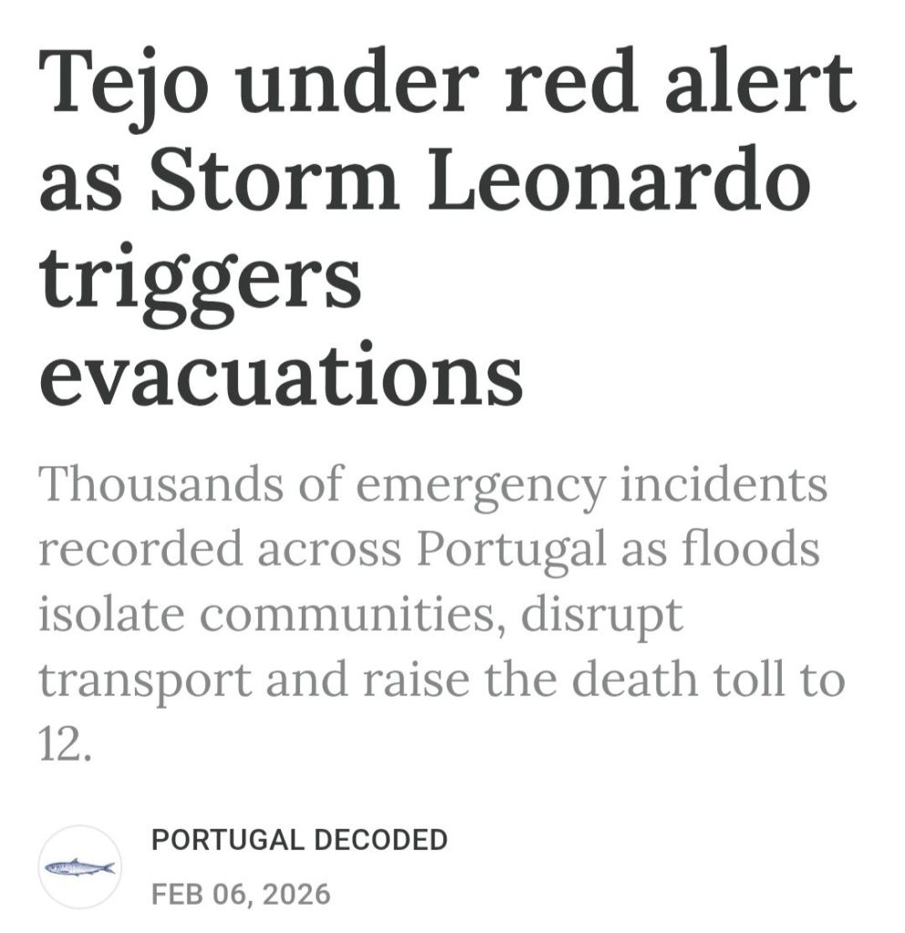 Bomb cyclone Kristin last week slammed into Portugal’s Silver Coast and Central regions with historic winds that reached as high as Category 3 (178-208kmh) hurricane force, causing the government to declare a state of emergency as it continues to tally the damages, which they now estimate at more than €4 billion. Storm Leonardo followed this week, causing flooding, landslides, and evacuations along overflowing rivers. Now, Portugal’s meteorologists are warning Storm Marta is coming this weekend, bringing winds of up to 120kmh (Category 1 hurricane force) and heavy rains to already devastated areas. Today, the national grid operator E-Redes reports 93,000 households remain without power. (Kristin initially knocked out power to more than a million homes.)