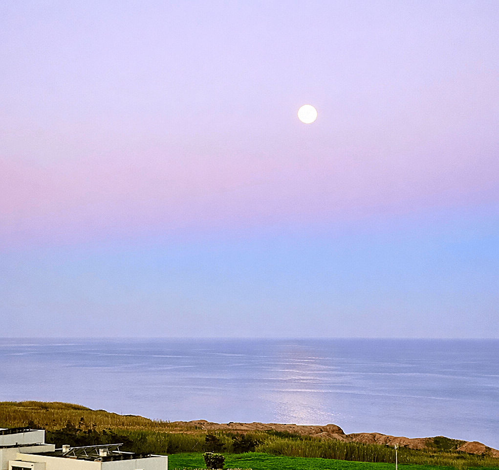 From my bed. Spring dawn with full moon shining over the sea. Bom dia!